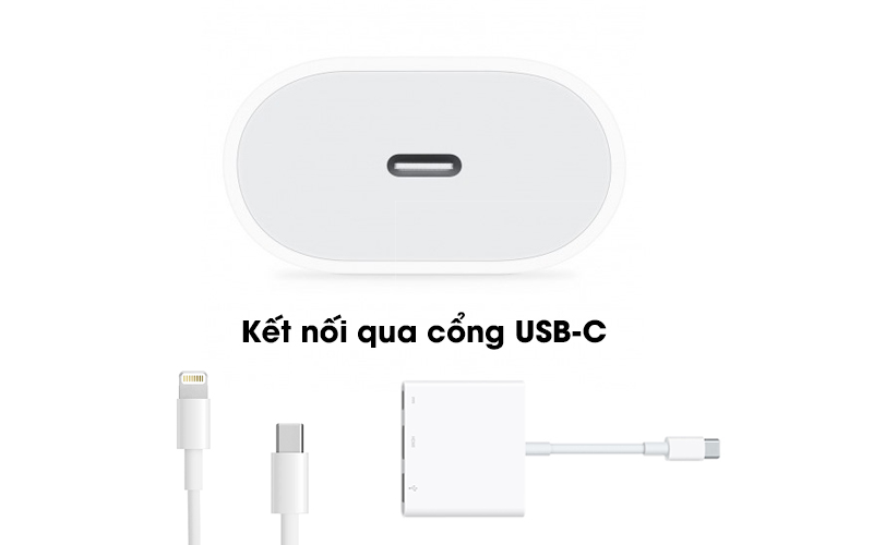Kết nối Adapter với cáp Type-C - Lightning để sạc cho iPhone, iPad hoặc cáp 2 đầu Type-C để sạc cho điện thoại, máy tính bảng có cổng Type-C