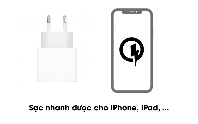 Adapter sạc Apple với công suất 18W hỗ trợ sạc nhanh cho iPhone, iPad có hỗ trợ sạc nhanh