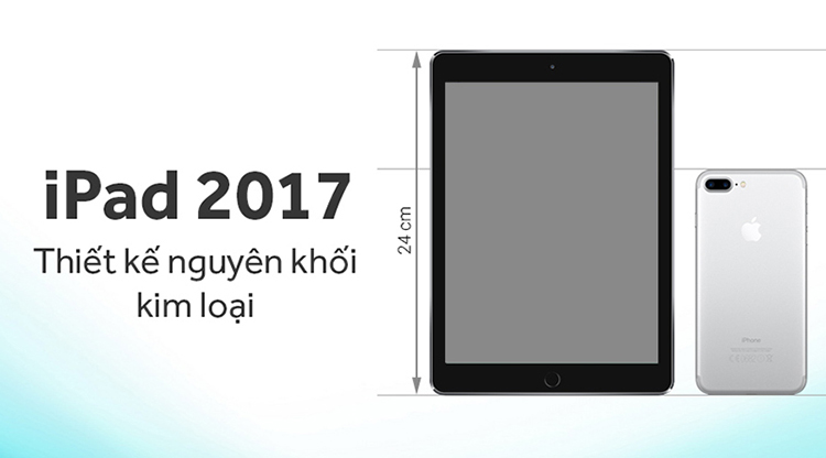 Phím Home của máy vẫn được tích hợp khả năng nhận diện vân tay giúp bạn mở khóa thiết bị nhanh chóng. Tuy nhiên so với thế hệ iPad Air 2 thì thế hệ iPad 2017 lại có trọng lượng nặng hơn và dày hơn đôi chút.