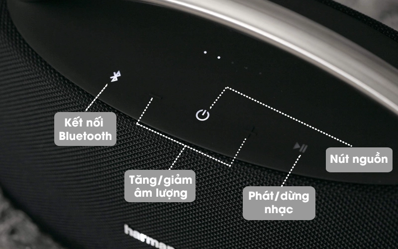 Loa bluetooth Harman Kardon Go+ Play được tích hợp công nghệ cảm ứng điều khiển tinh tế và dễ sử dụng. Trên bảng điều khiển cảm ứng bao gồm: Tăng/Giảm âm lượng, phát/dừng nhạc, kết nối bluetooth, nguồn.