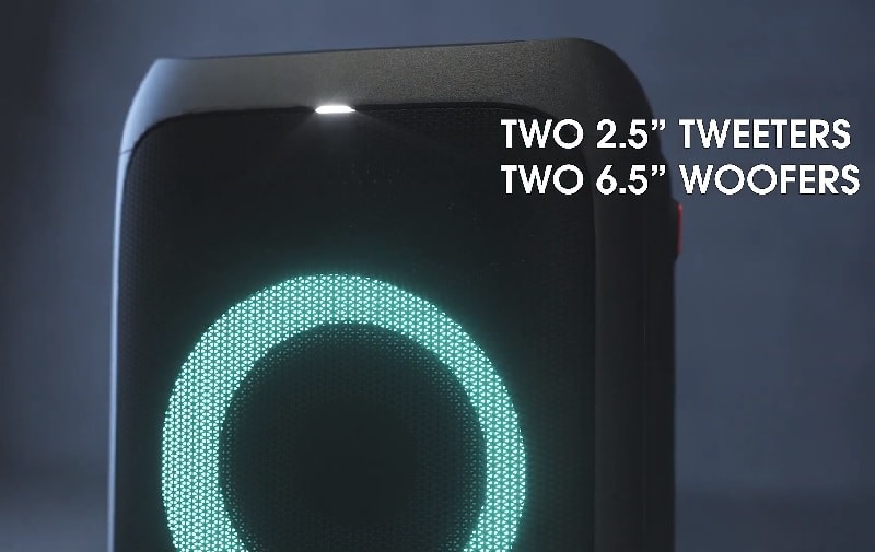 Nằm bên trong JBL Partybox 310 là 4 củ loa với 2 củ bass (16,5cm) và 2 củ treble (6,35cm) với tổng công suất 240W. Từ đó tạo nên âm thanh rền vang, cực kỳ sống động và chân thực. Vượt trội hơn hẳn so với phiên bản trước của nó.