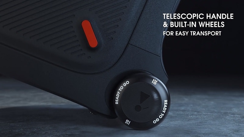 Là bản nâng cấp tiếp theo của loa JBL PartyBox 300 nên chiếc 310 có ngoại hình không có quá nhiều khác biệt. Tuy nhiên kích thước được làm gọn hơn và phần đèn LED đã nâng cấp đẹp hơn rất nhiều. Đặc biệt là JBL PartyBox 310 có thêm 2 bánh xe ở mặt dưới cùng tay cầm ở phía trên để người dùng có thể kéo loa rất dễ dàng.