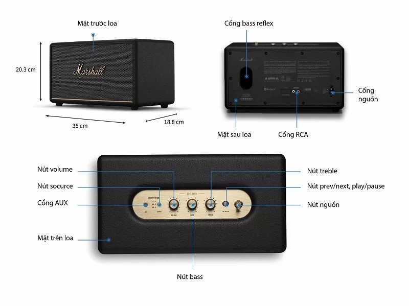 Khả năng kết nối đa dạng đáp ứng kết nối không dây và có dây của Loa Marshall Stanmore 3 (III).
