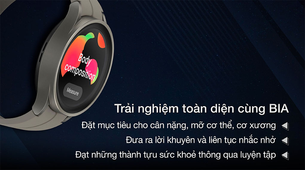 Nhờ khả năng phân tích thành phần cơ thể với 7 chỉ số sức khoẻ: Cân nặng, cơ xương, khối lượng mỡ, lượng mỡ cơ thể, lượng nước, chỉ số BMI (chỉ số khối cơ thể), chỉ số BMR (tỉ lệ trao đổi chất cơ bản) và tính năng Xác lập mục tiêu tập luyện (BIA), đồng hồ sẽ giúp bạn hiểu rõ cơ thể và thiết lập các mục tiêu phù hợp với bản thân hơn.