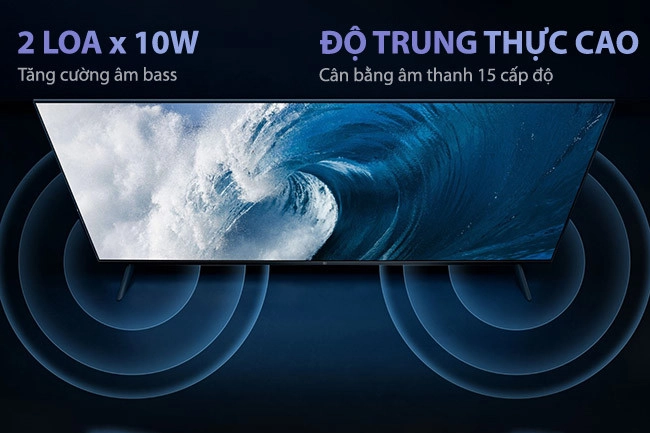 Với 2 loa 10W ở hai bên giúp tăng cường âm trầm mạnh mẽ tạo hiệu ứng âm thanh nổi sống động. Hệ thống loa được hỗ trợ bởi bộ giải mã âm thanh DTS chất lượng cao, có khả năng tái tạo âm thanh cân bằng với độ trung thực cao và 15 cấp độ âm thanh nổi sống động.