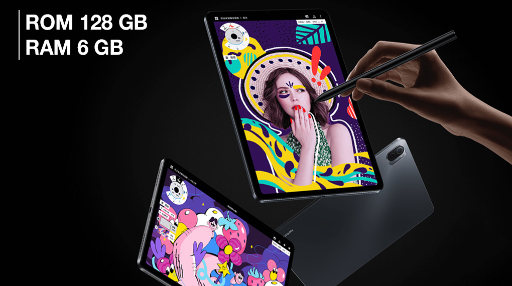 Máy tính bảng ROM 128 GB bộ nhớ trong, bạn có thể dễ dàng lưu nhiều bộ phim truyền hình dài tập và những tệp nặng hằng ngày. Bên cạnh đó, máy tính bảng có RAM 6 GB giúp xử lý đa nhiệm liên tục, mạnh mẽ trong mọi công việc cũng như giải trí.